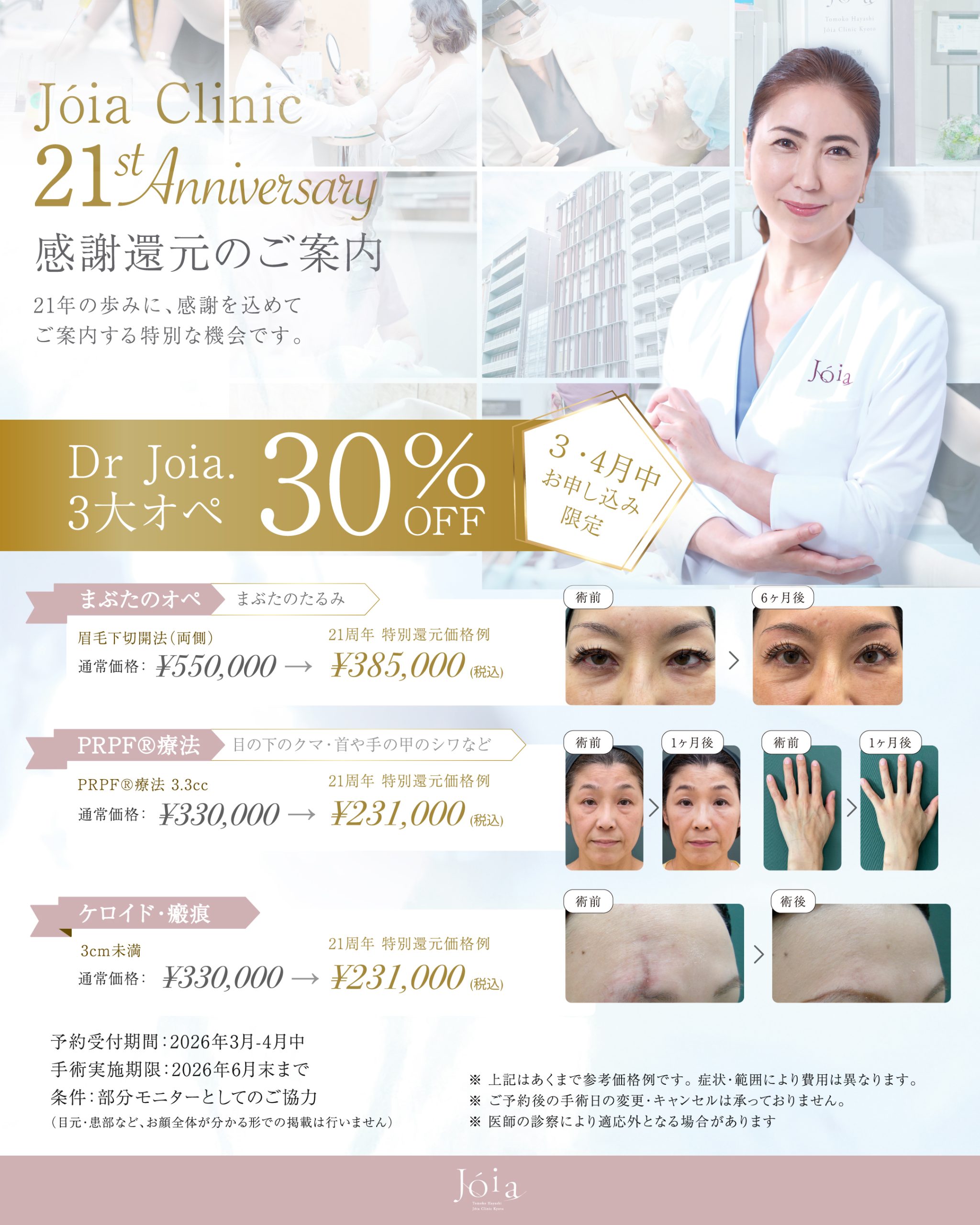 【3月4月限定】ジョイアクリニック開院21周年記念 感謝還元キャンペーンのご案内